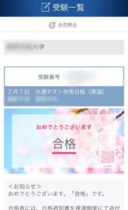 ▲韓流ドラマオタクの先のルートにある大学へ合格した時のスクショを送ってきてくれました。(この子、次は台湾に行くって言ってました、そういえば。)
